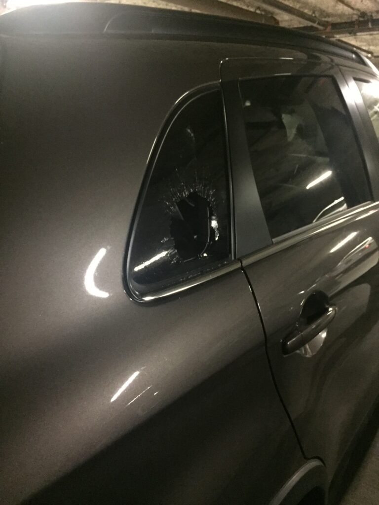 さて、3度目の車は8年前の2018年にジャパンタウンで、友達としゃぶしゃぶを食べて帰る時に車に戻ったら様子がおかしい。おかしいと思いながら車を走らせたら、車内で風がひゅ~ひゅ~寒いではないか。ふと、後ろを振り向くと窓がぶち割られていることに気が付いた。 やられた! だがなんとこの事件の夜、これまた家のガレージの侵入者にアパートの住民が数人被害にあって、2度も同じ窓をやられた。だが何もないのにさらに窓をこじ開けて、何かないか探っていて、私の車の中に使っていた傘を置いて行った。多分傘でゴリゴリと物色したけど、その傘が窓から取れなくなったんだろう。 アホもええとこ。